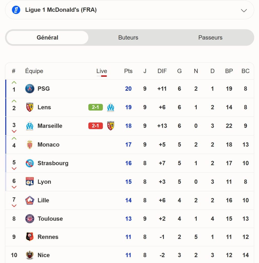 Après deux saisons mouvementées, marquées par l’inconstance, les changements internes et une perte d’identité, le RC Lens a retrouvé son rythme — et les résultats parlent d’eux-mêmes. Solidement installé à la 2ᵉ place de Ligue 1, le club artésien a redécouvert la formule qui avait fait de lui l’un des projets les plus admirés du football français.